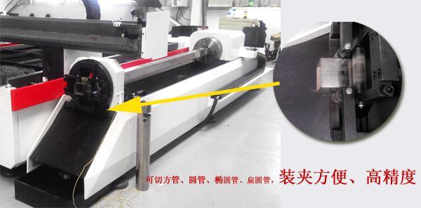 YC-GQ3015-G系列管板一體光纖激光切割機針對同時需求板材切割與管材切割客戶推出的板管一體光纖激光切割設備(管板兩用激光切割機|管板兩用金屬光纖激光切割機|管材激光切割機)。具有性能穩(wěn)定、高效節(jié)能、性價比高等優(yōu)點。YC-GQ3015-G專業(yè)切割方管、圓管、矩形管、D型管和六邊形管等各類型管材,方管□20*20 - □100*100mm,圓管Φ20-Φ150mm,管壁厚度0.5-5mm碳鋼管,0.5-3mm不銹鋼管;切割0.5~12mm碳鋼板,0.5~5mm不銹鋼板,0.5~3mm黃銅,0.5~2mm紫銅及鍍鋅板、電解板、硅鋼等多種金屬材料(厚度以及材料與激光器有關)